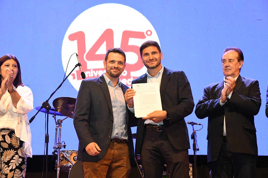 Con el mandatario provincial sobre el escenario, acompañado de gran parte de su gabinete, el Intendente Braidot entregó el Decreto Nº0051/2024 declarando “Huésped de Honor” al Sr. Gobernador de la Provincia. Lo propio hizo el Senador Orfilio Marcón, con la Declaración de Interés de la Cámara de Senadores de la Provincia de Santa Fe al igual que los Diputados Dionisio Scarpin y María del Rosario Mancini, con la de su Cámara, representada en este acto por su presidenta, la Diputada Clara García.