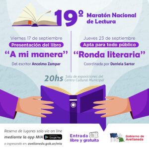 En el marco de la 19° Maratón nacional de lectura, el Gobierno de Avellaneda y el Centro de Escritores de nuestra ciudad invitan a la comunidad a participar de la ronda literaria, apta para todo público, que tendrá lugar hoy jueves 23 de septiembre a las 20hs en la Sala de exposiciones del Centro Cultural Municipal de nuestra ciudad.