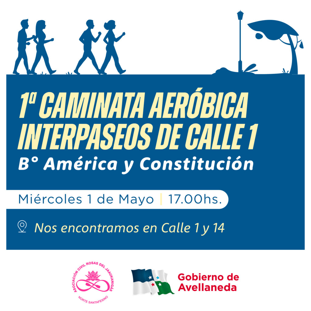Priorizando la salud física, la recreación y el disfrute de los espacios verdes de la ciudad, el Gobierno de Avellaneda y el grupo Rosas del Jaaukanigás invitan a los vecinos y vecinas, de todas las edades, a participar de la 1ª Caminata aeróbica interpaseos de Calle 1 (B° América y Constitución).