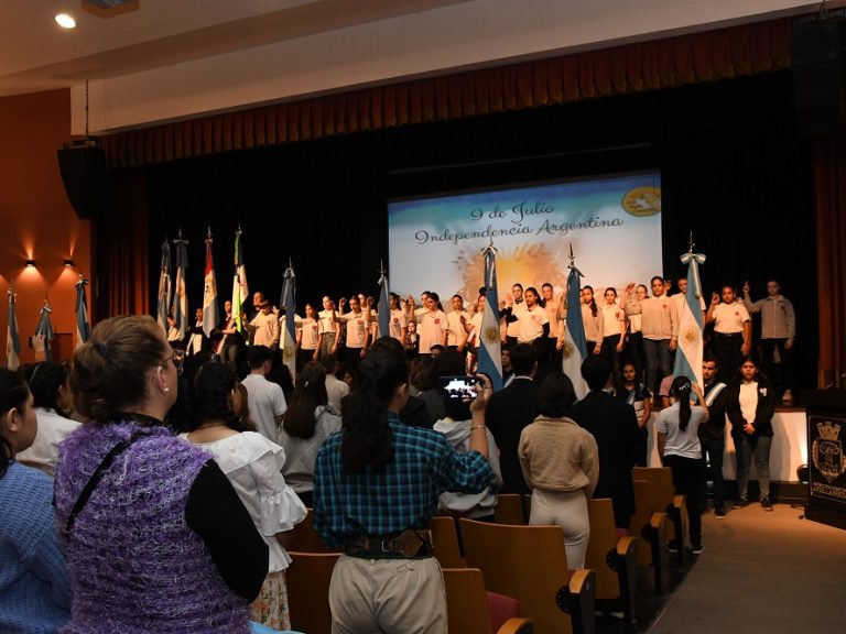 “El aprendizaje es lo que nos permitirá ser y defender nuestra independencia, nuestra libertad” dijo el Intendente Gonzalo Braidot, dirigiéndose principalmente a los jóvenes presentes en el acto de conmemoración del 9 de julio, actividad que se desarrolló hoy viernes 8 de julio, conjuntamente con el Instituto Roberto Vicentín en el Auditorio Municipal de Avellaneda, representado por su directora María Soledad González.