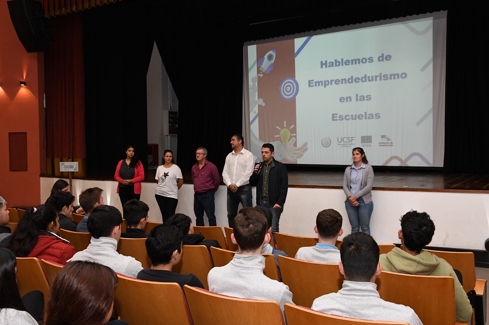 “Animarse por uno mismo o colectivamente a empujar hacia los sueños que uno tiene, es en esencia, emprender. Y trabajarlos con uds, desde temprana edad, con la escuela secundaria, es muy importante pues este es el momento en el que están decidiendo sobre su destino”, destacó el Intendente Gonzalo Braidot en ocasión de llevarse adelante, este miércoles 26 de abril en el Auditorio Municipal, una jornada de “Hablemos de emprendedurismo en las escuelas” en el marco del programa Jovemprende, que financia la Unión Europea.