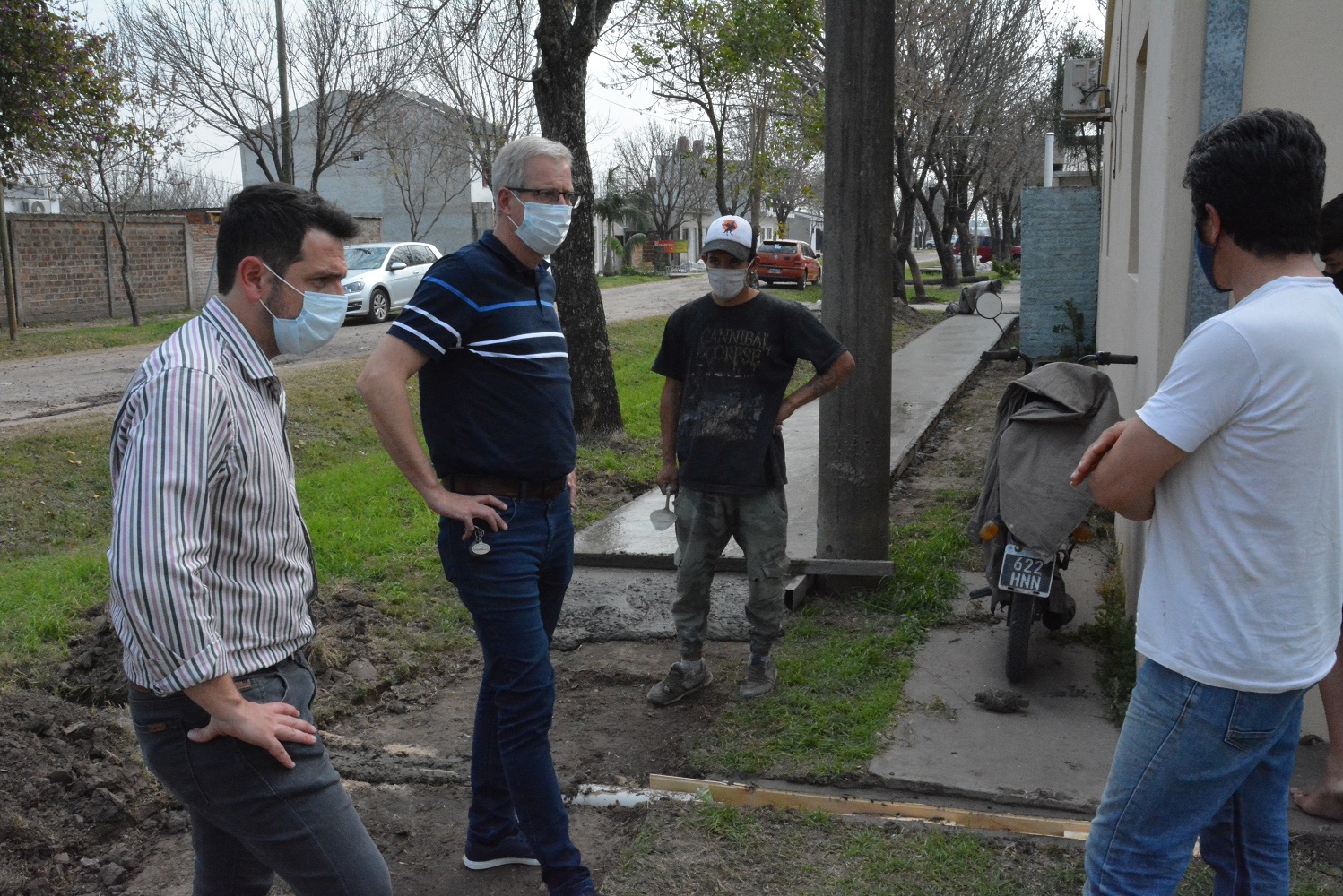 El Intendente Dionisio Scarpin y el Secretario de Gobierno y Participación Ciudadana, Gonzalo Braidot recorrieron, este jueves 19 de agosto, un nuevo tramo de veredas comunitarias que se lleva adelante en B° Belgrano de Avellaneda, en el marco del Programa de veredas comunitarias.
