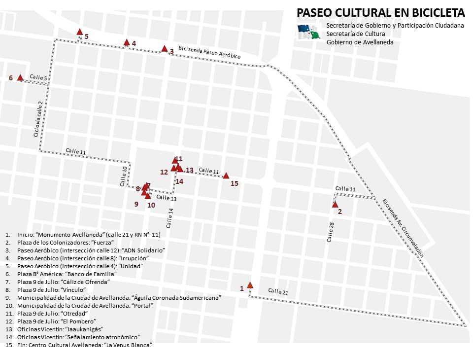 Compartimos dos mapas uno donde se puede apreciar el circuito de las esculturas y el mapa de ciclovías y bicisendas realizadas.
