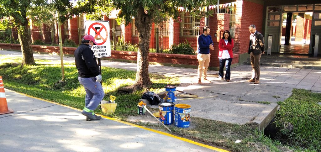El Intendente Gonzalo Braidot junto al Secretario de Gobierno y Participación Ciudadana, Bruno Zanel visitaron, en la mañana de este jueves 31 de marzo, la Escuela N° 1174 Estanislao López de B° Don Pedro, donde fueron recibidos por la Vice directora, Mirna Arce. En el entorno de dicho establecimiento, se continúa con el programa de demarcación vial y señalización vertical de limitación de estacionamiento, para fortalecer la seguridad en el tránsito.