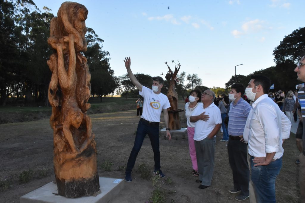 El Intendente Gonzalo Braidot junto al Presidente del Concejo Municipal y escultor, Tomás Franzoi y la Secretaria de Cultura, Mónica Sartor presidieron, este jueves 26 de enero en el Parque América, el acto de inauguración del Paseo de las Esculturas “Habitantes del Jaaukanigás”. a actividad tuvo lugar con la presencia de autoridades, representantes de instituciones y vecinos del barrio.
