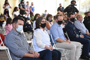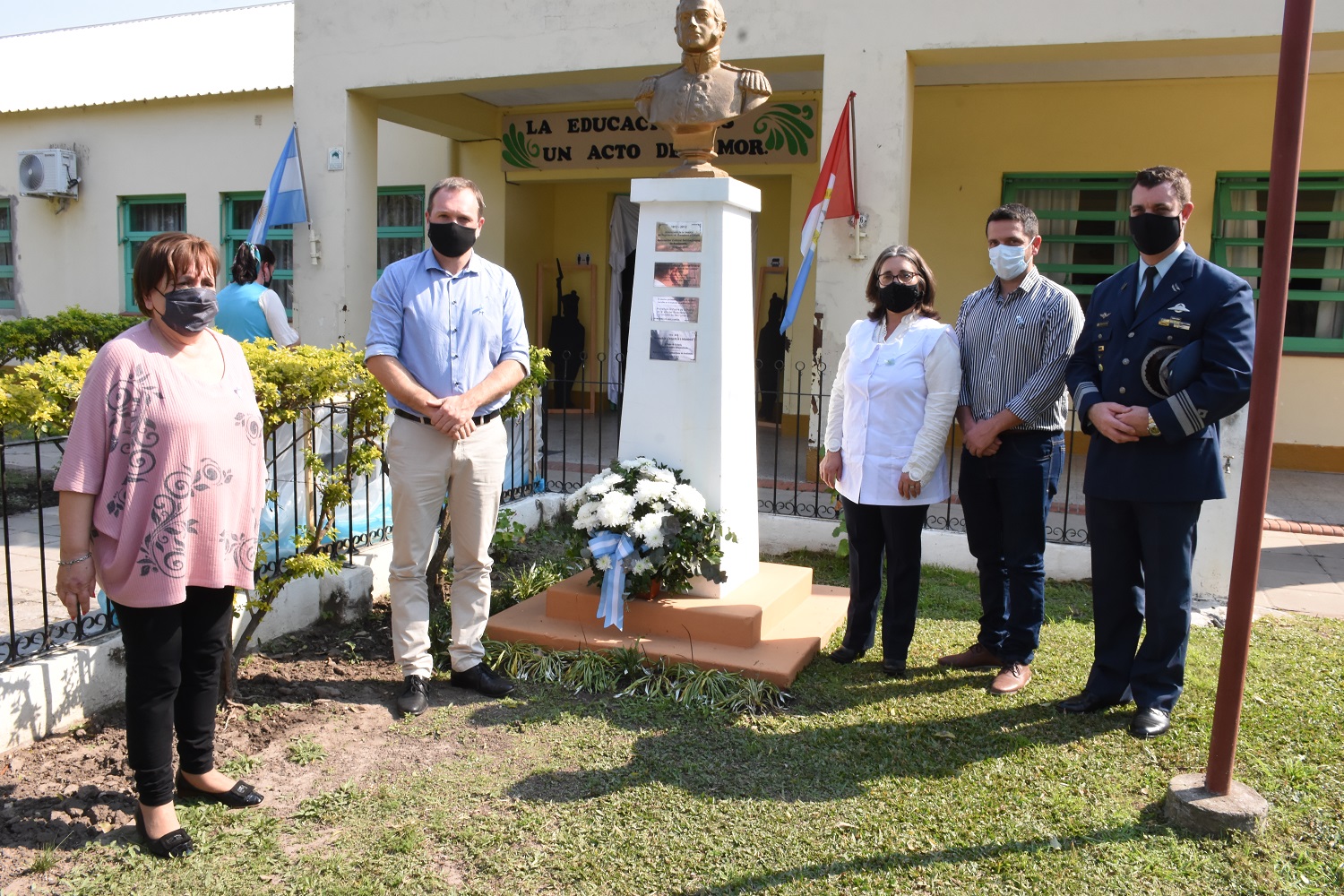 Estuvo presente el Presidente del Concejo Municipal, Martín Ponticelli y la edil Nora Braidot; el Secretario de Gobierno y Participación Ciudadana, Gonzalo Braidot; la directora de la escuela Stella Maris Vicentín, Fuerzas de Seguridad, integrantes de la asociación sanmartiniana y del Centro de Ex combatientes de Malvinas.