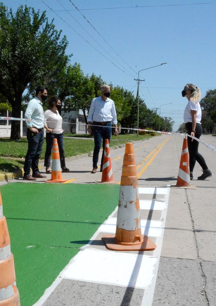 El Intendente Dionisio Scarpin junto al Secretario de Gobierno y Participación Ciudadana, Gonzalo Braidot; la titular de la cartera de Planeamiento Territorial y Obras Públicas, Gisela Acosta e integrantes de su equipo, recorrieron la ciclovía que se extiende en Calle 2, desde su intersección con Calle 1 hasta 21.