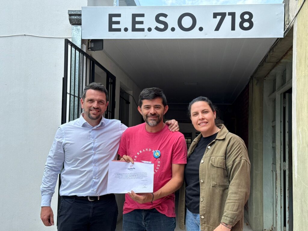 El Intendente Gonzalo Braidot visitó la EESO N° 718 del Barrio Don Pedro, donde fue recibido por su director, Jorge Castillo. En la ocasión, hizo entrega de Fondos para la Atención de Necesidades Inmediatas (FANI), por un monto total de $4.708.000.