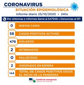 COVID – 19: SITUACIÓN EPIDEMIOLÓGICA. Informe al cierre del día domingo 25 de octubre.