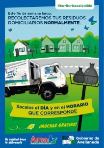 El Gobierno de Avellaneda informa que, durante el fin de semana largo, debido el feriado del viernes 9 de julio, Día de la Independencia argentina, el servicio de recolección de residuos domiciliarios se llevará adelante sin cambios en su cronograma habitual.