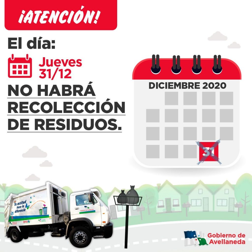 El Gobierno de Avellaneda informa que, con motivo de las fiestas de fin de año, este jueves 31 de diciembre, NO habrá servicio de recolección de residuos.