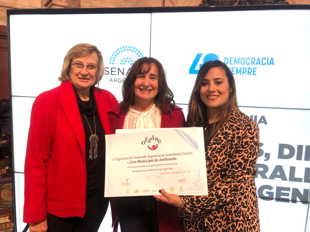 El Gobierno de Avellaneda felicita al Coro Polifónico Municipal de la ciudad, dirigido por Ailén Basimiani, por ser galardonado con el Premio a la Trayectoria por parte de la Organización Federada Argentina de Actividades Corales (OFADAC), en reconocimiento por su aporte para la construcción de la historia y memoria coral argentina y Diploma de honor del Senado de la Nación por haber cumplido sus 50 años de invaluable aporte a la actividad coral de Argentina.