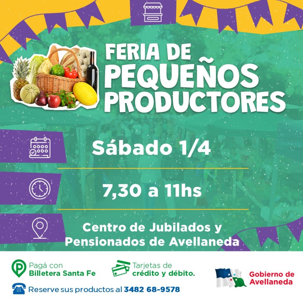 Frutas y verduras, legumbres, panificados y una gran variedad de productos para llevar a tu mesa, encontralos este sábado 1 de abril, de 7,30 a 11hs en la Feria de pequeños productores, que tendrá lugar en el Centro de Jubilados y Pensionados de Avellaneda (Calle 15 N° 945).