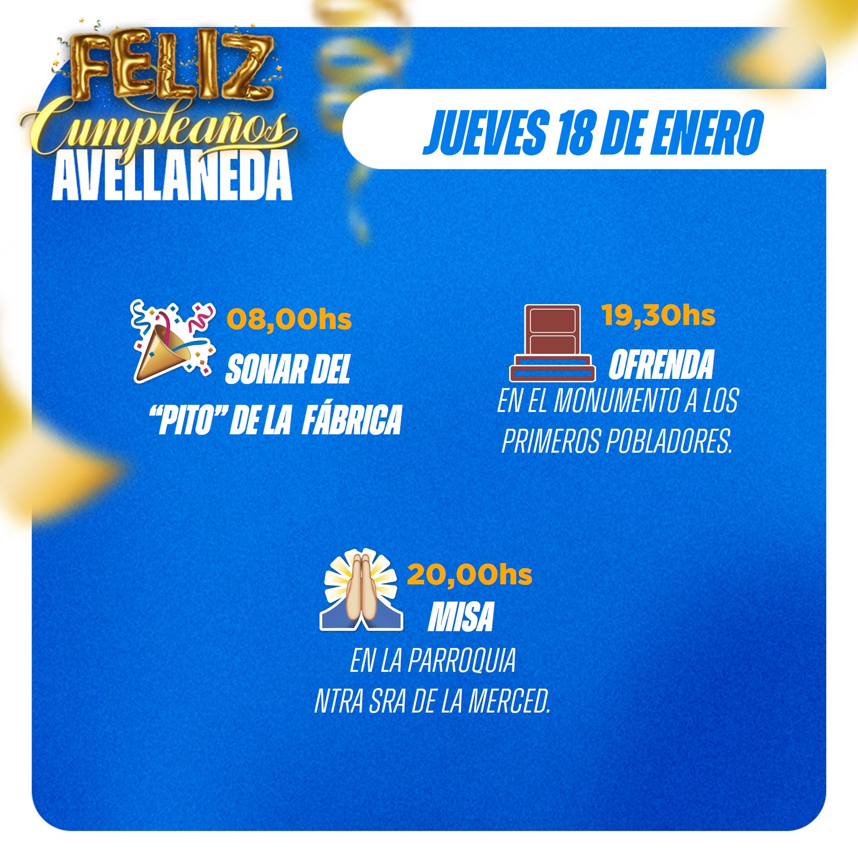 El domingo 21 de enero, desde las 19hs en la Plaza Central, la comunidad celebrará a pura música este 145° Aniversario de la fundación de Avellaneda. Los esperamos!