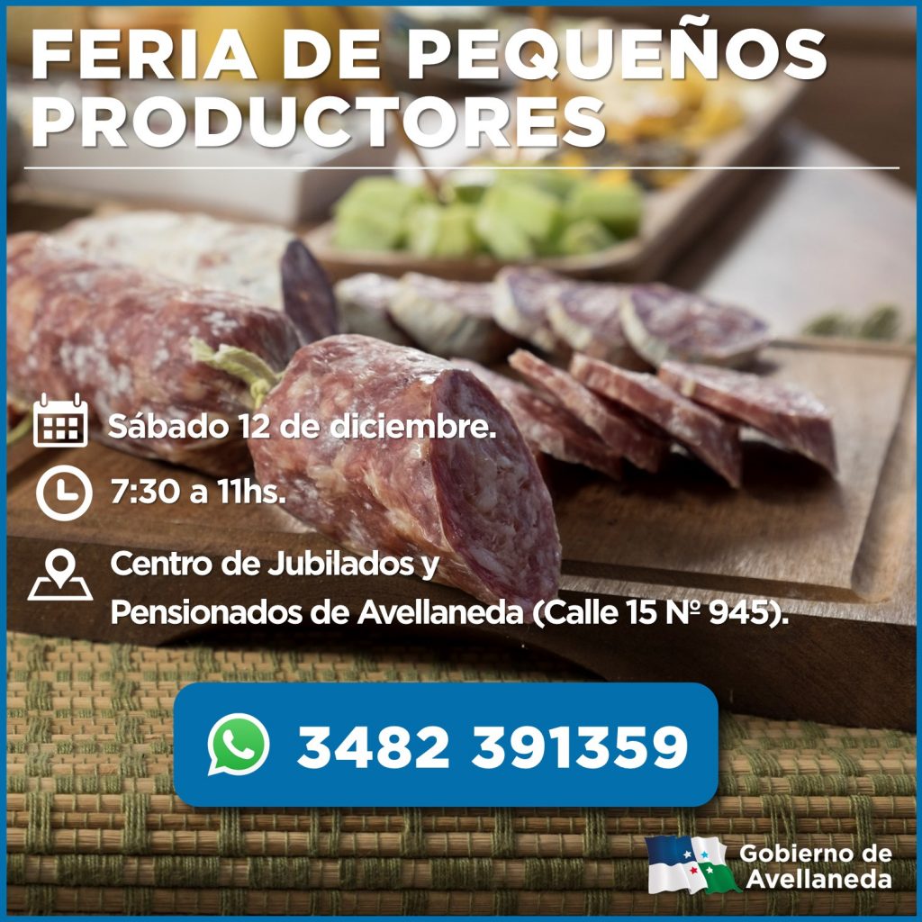 El Gobierno de Avellaneda y los pequeños productores invitan a la comunidad a visitar la Feria, que tendrá lugar este sábado 12 de diciembre de 7,30 a 11hs en el Centro de Jubilados y Pensionados de esta ciudad (Calle 15 Nº 945).