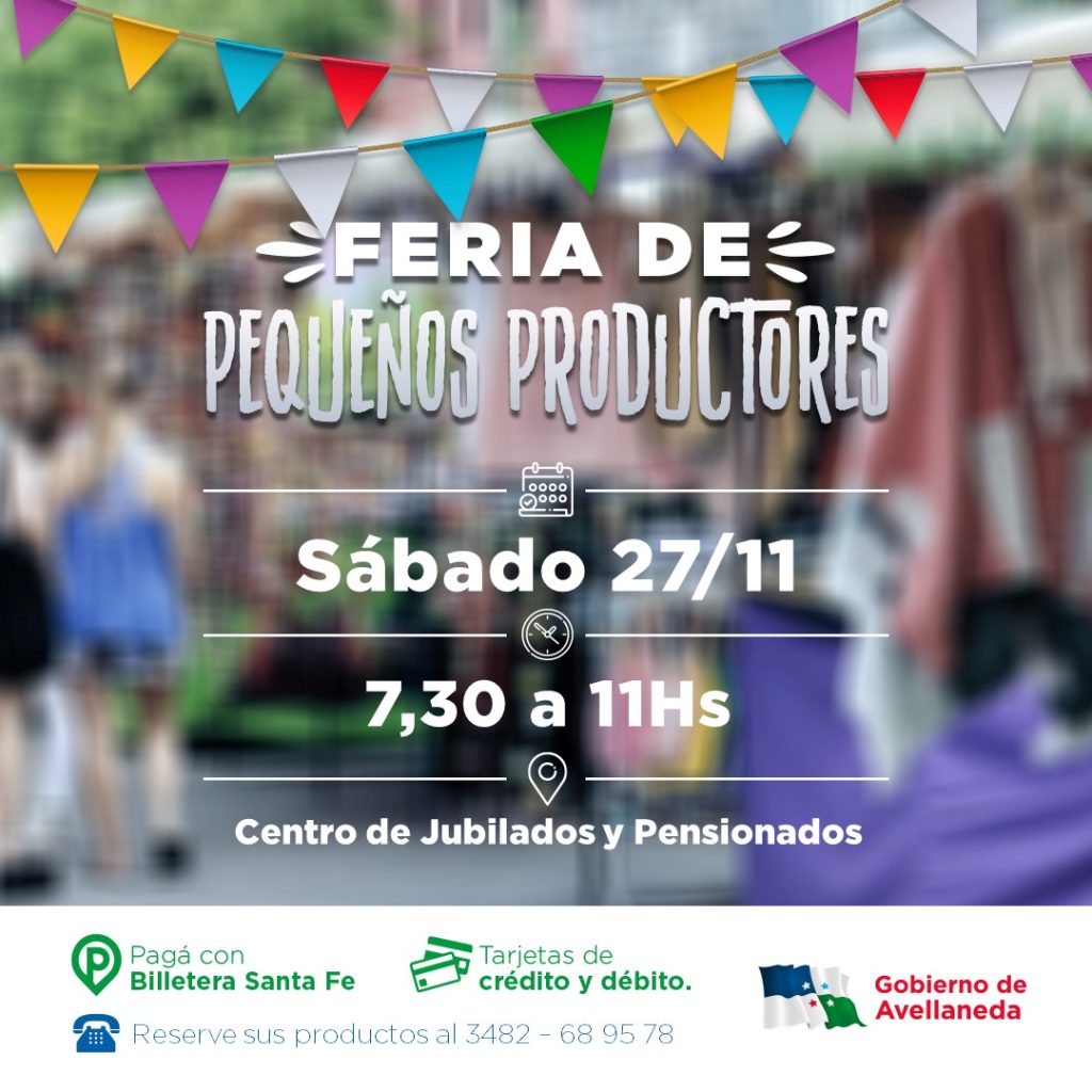 El Gobierno de Avellaneda y los pequeños productores invitan a visitar la Feria que se llevará adelante este sábado 27 de noviembre de 7,30hs a 11hs en el Centro de Jubilados y Pensionados (Calle 15 N° 945).