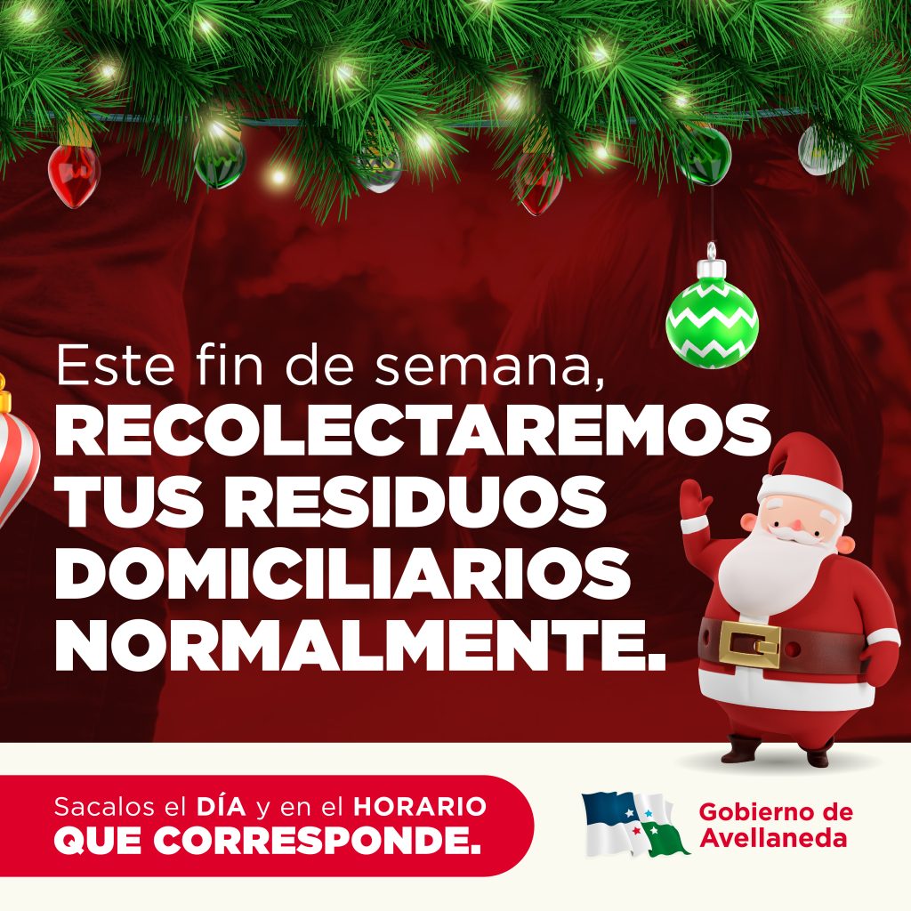 El Gobierno de Avellaneda informa que, durante el fin de semana de navidad, el servicio de recolección de residuos será normal, sin cambios en el cronograma habitual.