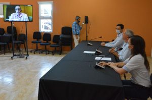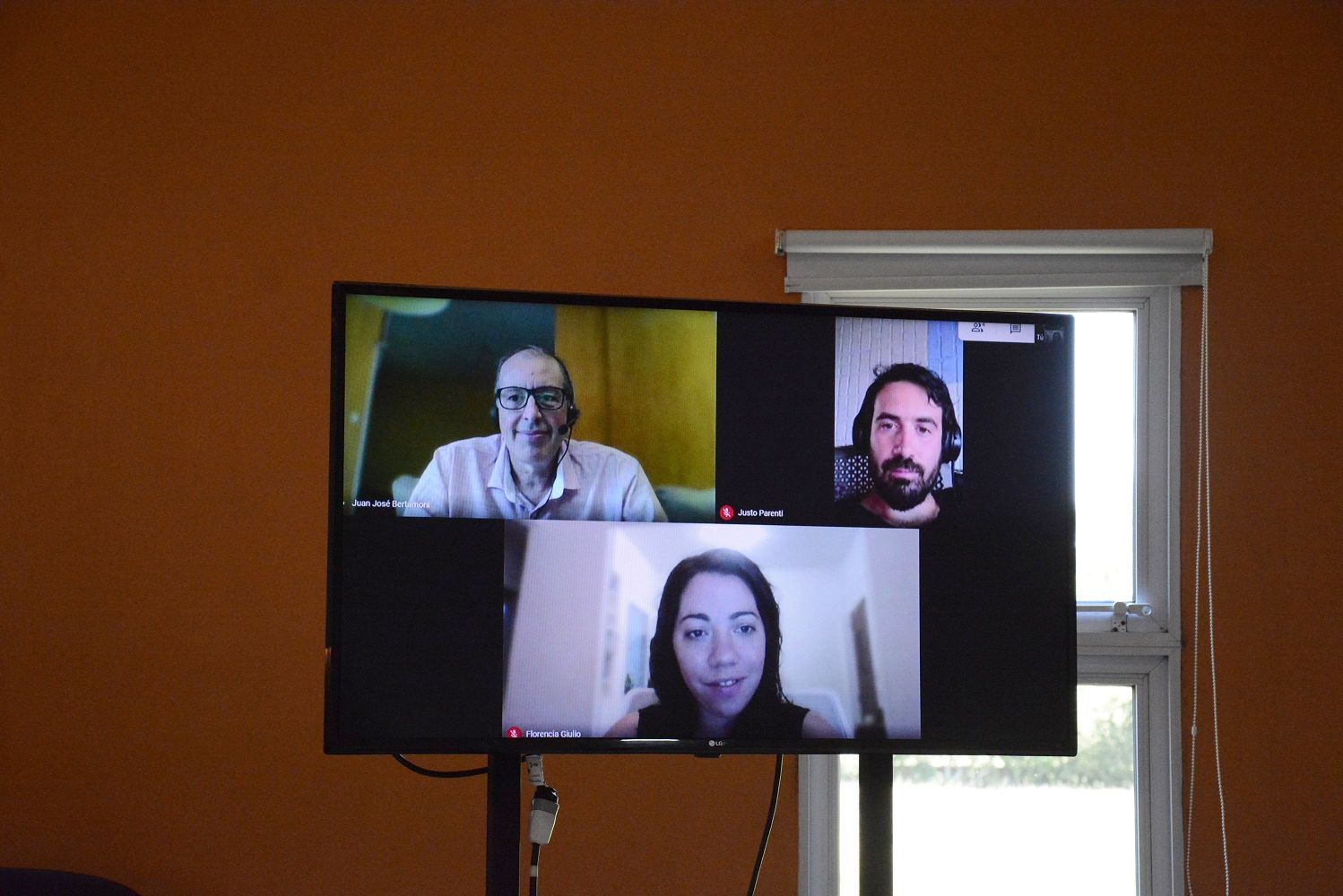 El Intendente Dionisio Scarpin junto al Secretario de Producción y Desarrollo, Hugo Bernardis, la Presidente de Agenpia, Yamila Massat y en forma remota con Juan José Bertamoni, Director de Potrero Digital; y Justo Parenti y Florencia Giulio de Compromiso Digital presentaron, hoy viernes 11 de diciembre, en conferencia de prensa vía streaming, Potrero Digital, escuela de oficios en Avellaneda.