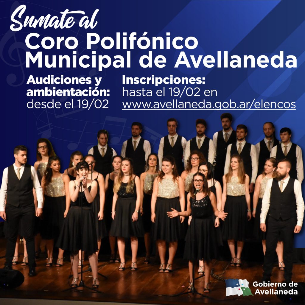 El Gobierno de Avellaneda invita a los interesados a sumarse a los elencos del Coro Polifónico, el Coro infanto – juvenil, la Banda de música y/o Orquesta Municipal inscribiéndose on line en www.avellaneda.gob.ar/elencos-municipales/
