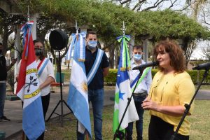 En presencia de las banderas de ceremonias portadas por los abanderados de la ciudad, la titular de la cartera de cultura dirigió unas palabras alusivas “Esta es una de las únicas plazas de la provincia de Santa Fe, que se llama Dr. Nicolás Avellaneda, y por eso en este día tan especial queremos distinguirla y destacar a un hombre que hizo mucho por nuestra ciudad, no solo a través de su Ley de Inmigración permitió que nuestros nonos puedan venir a nuestras tierras…sino que también a través de este acto, queremos seguir construyendo ciudadanía e identidad y fortalecer los valores que nos legaron nuestros abuelos”, señaló la Profesora Sartor.