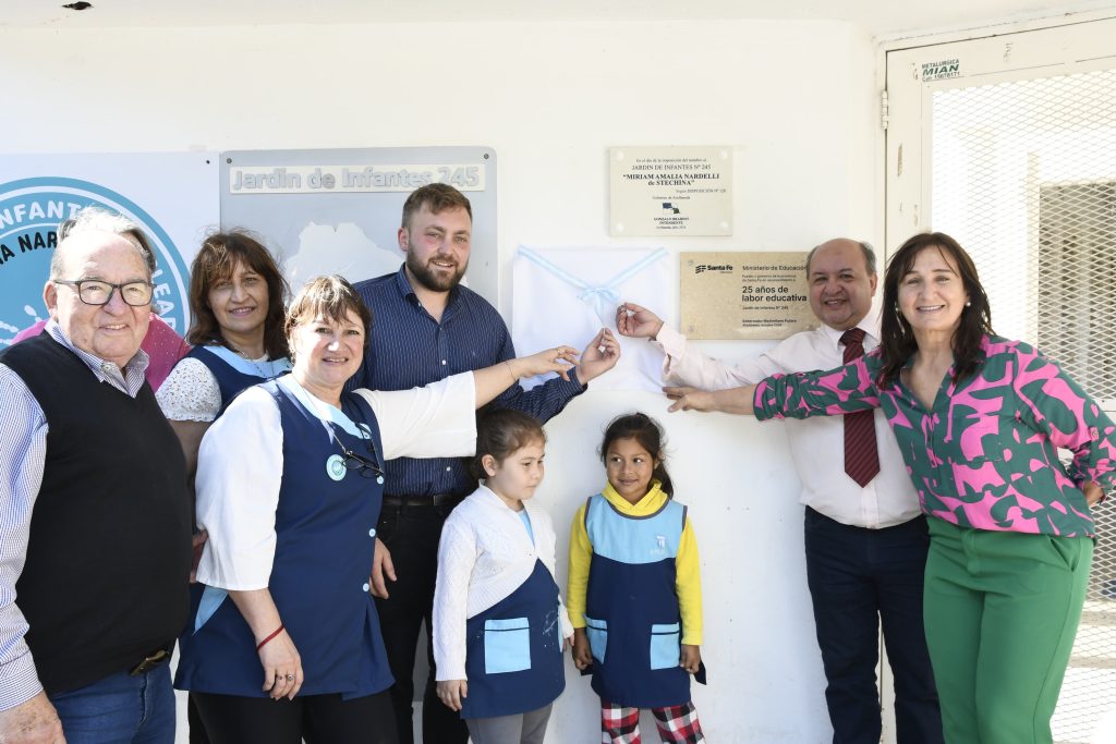 En la mañana de hoy, la comunidad se reunió para celebrar el 25° aniversario del Jardín de Infantes Nucleado N° 245 «Miriam Amalia Nardelli de Stechina.» El evento contó con la presencia de autoridades locales, familias, docentes y alumnos, quienes se acercaron para conmemorar este importante hito en la historia de la institución.