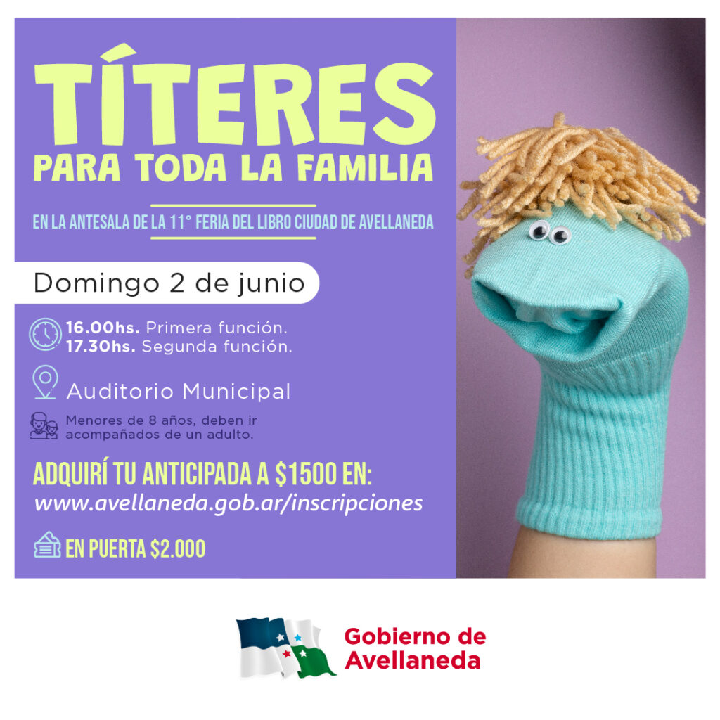 Tras el éxito de la última función, el Gobierno de Avellaneda invita a la comunidad a participar de un nuevo encuentro de “Títeres para toda la familia” que tendrá lugar el domingo 2 de junio en el Auditorio Municipal de esta ciudad.