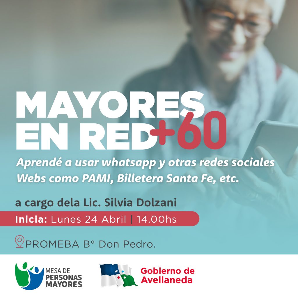 Con el objetivo de promover la autonomía de las personas mayores, el Gobierno de Avellaneda y la Mesa de personas mayores proponen a los vecinos/as, mayores de 60 años, sumarse y aprender cómo manejar whatsapp y otras redes sociales, así como también acceder y realizar trámites mediante la web de PAMI, Anses y aplicaciones como Billetera Santa Fe.