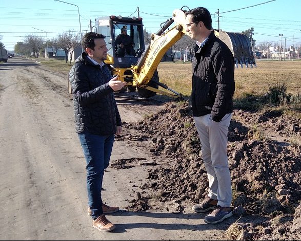 El Intendente Gonzalo Braidot junto al Secretario de Servicios Públicos y Medio Ambiente, Hugo Bernardis visitaron, este miércoles 29 de junio, los trabajos de cuneteos y alteo de calles en el sector este de B° La Roseta, en el marco del Programa de mejoramiento barrial.