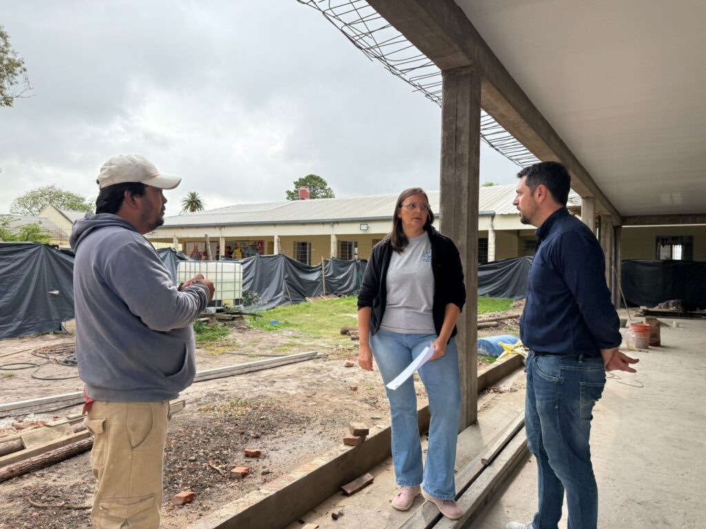 Durante su visita, el mandatario también recorrió la obra de construcción de dos nuevas aulas de aproximadamente 50 m² cada una, que se ejecutan en el marco del programa provincial “1000 aulas”, iniciativa que busca ampliar y mejorar los espacios de enseñanza.