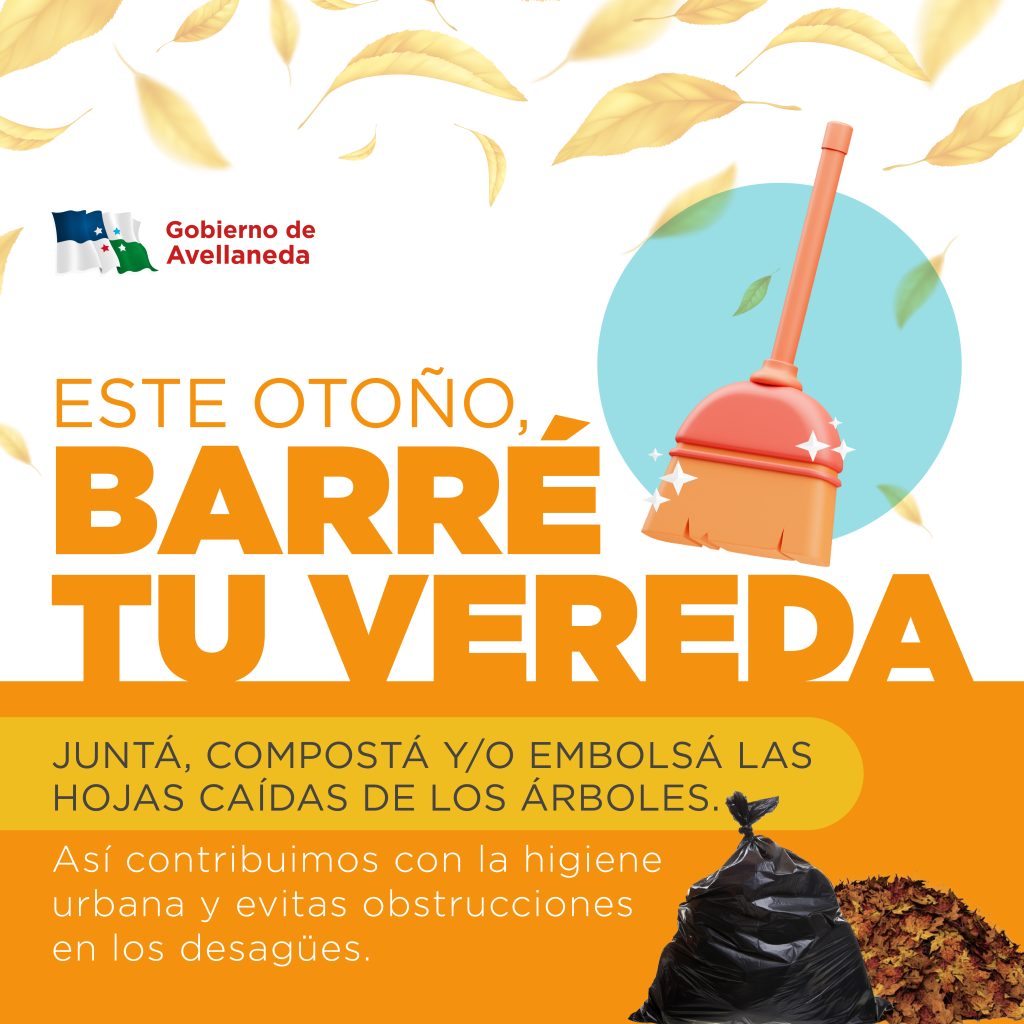 El Gobierno de Avellaneda recuerda a los vecinos y vecinas que es importante, a la hora de barrer sus veredas, juntar las hojas de los árboles pudiendo agregarlas a su compostera domiciliaria o embolsarlas para contribuir con la higiene urbana y evitar obstrucciones en los desagües.