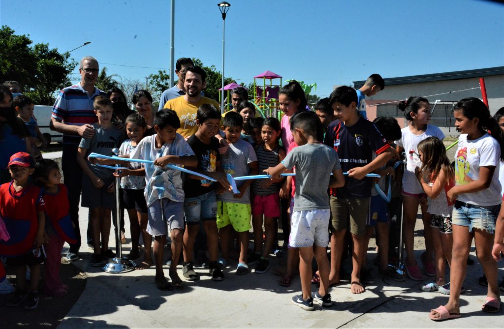 El Intendente Dionisio Scarpin junto al Secretario de Gobierno y Participación Ciudadana, Gonzalo Braidot encabezaron el acto de inauguración de la Plaza de los niños en B° Belgrano, un espacio verde más que se crea en el marco de la política de espacios verdes para la ciudad.