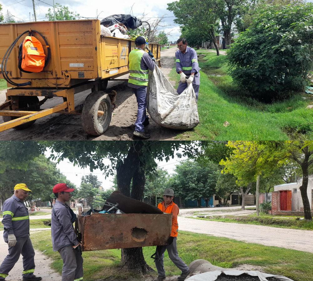 Las acciones continúan en B° Belgrano, donde agentes municipales retiran de los patios, todos aquellos elementos en los que pueda acumularse agua y ser criadero de mosquitos.