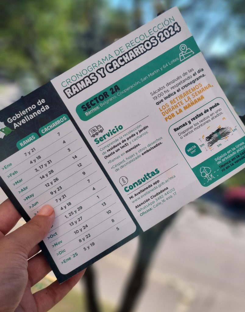 El Gobierno de Avellaneda informa a la comunidad que, esta semana, finalizó la distribución – casa por casa – de los cronogramas de recolección de ramas y cacharros organizada para el año en curso.