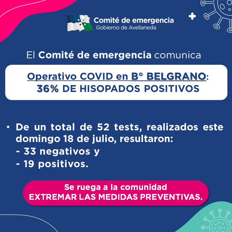 Resultados del Operativo de testeos COVID realizado este domingo 18/7 en el CCI de B° Belgrano.