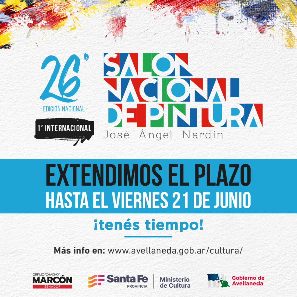 El Gobierno de Avellaneda informa a los interesados en participar del 26° Salón Nacional e Internacional de Pintura “José Ángel Nardín”, que se prorrogó hasta el viernes 21 de junio el plazo de inscripción y presentación de carpetas, bajo una única modalidad: la virtual, enviando una fotografía de la obra a [email protected]