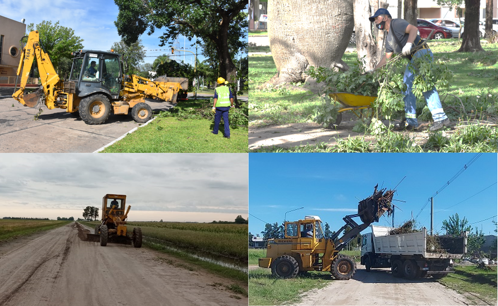 Respecto de la optimización de los caminos rurales, las labores continúan con maquinarias de gran porte en Avellaneda Oeste y Moussy, y en tanto en zona urbana como rural, se destacan los desmalezados y la limpieza de tubos de alcantarillas.