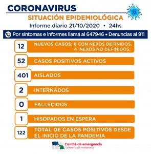 SITUACIÓN EPIDEMIOLÓGICA. Informe al cierre de la jornada del miércoles 21/10.