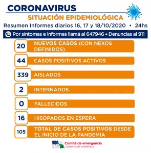 SITUACIÓN EPIDEMIOLÓGICA. Suma de los datos de los días 16, 17 y 18/10.