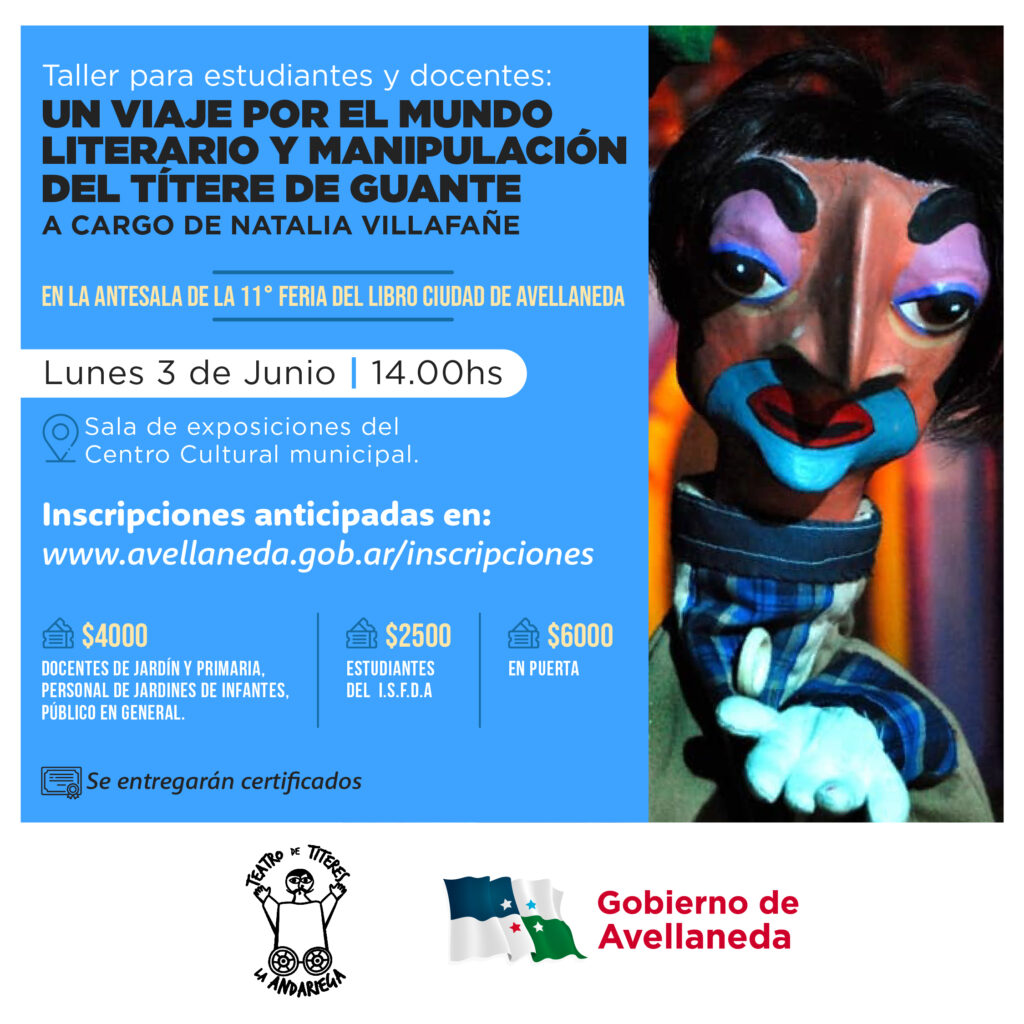 En la antesala de la Feria del libro, el Gobierno de Avellaneda y el Teatro de títeres “La andariega” invitan a estudiantes y docentes a participar de la jornada “Un viaje por el mundo literario y manipulación del títere de guante” a cargo de la reconocida titiritera Natalia Villafañe.
