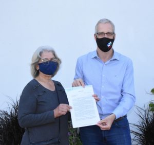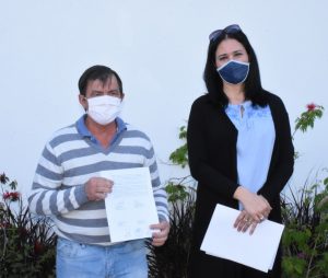 El Intendente Dionisio Scarpin junto a la Coordinadora de la Asociación para el Desarrollo Regional, Flavia Franco entregaron, hoy jueves 8 de octubre en la Secretaría de Producción y Desarrollo, créditos por un monto de $850.000.