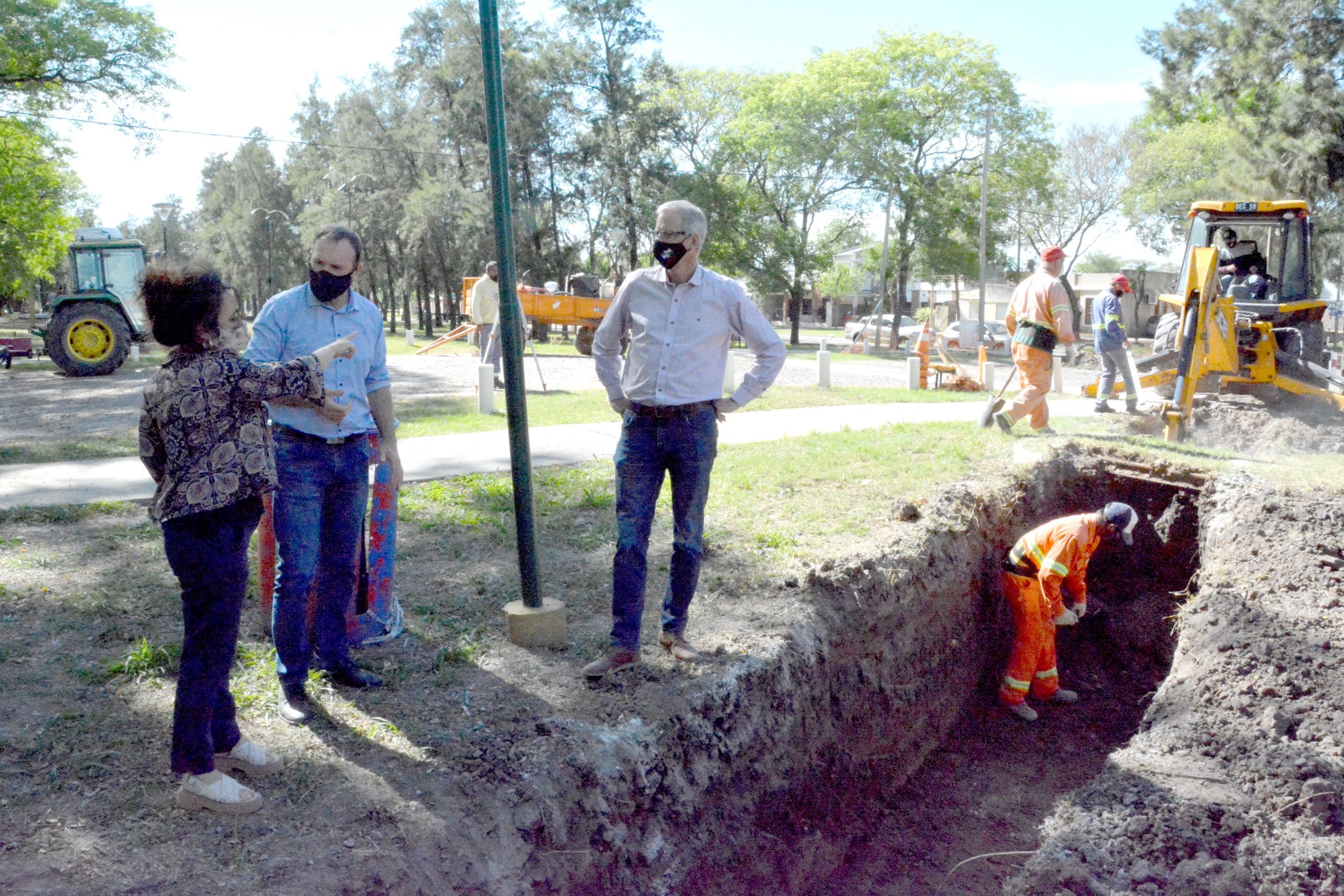 El Intendente Dionisio Scarpin junto al Presidente del Concejo Municipal, Martín Ponticelli y la Secretaria de Planeamiento Territorial y Obras Públicas, Gisela Acosta recorrieron la obra de desagüe que se ejecuta en Calle 6 entre las Calles 1 y 301.