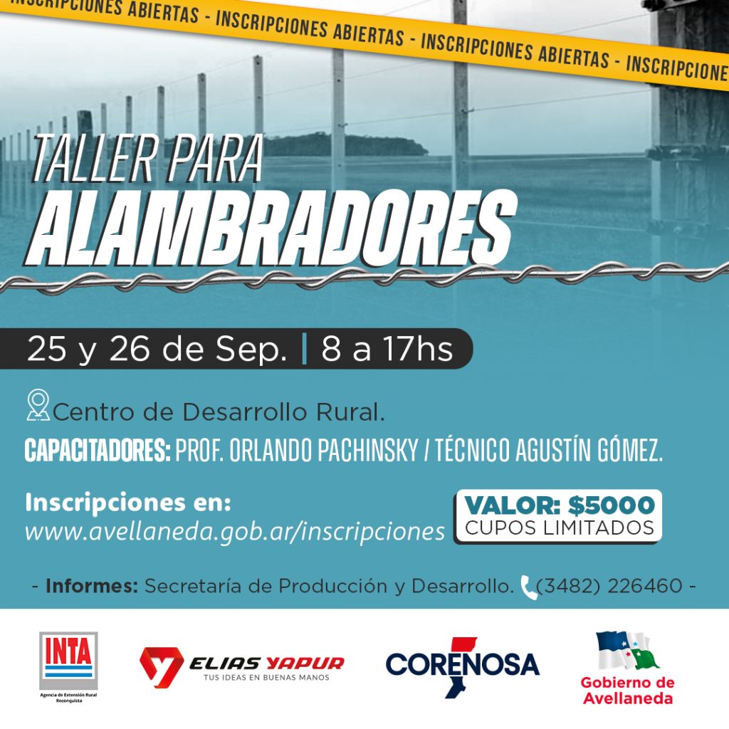 Contribuir al desarrollo y dinamismo de la ruralidad en Avellaneda y la región a través de la formación, educación y generación de emprendimientos productivos, es una de las prioridades del Gobierno de Avellaneda que, junto a la firma Elias Yapur e INTA Reconquista dictarán un taller teórico práctico para alambradores, a cargo de los capacitadores Prof. Orlando Pachinsky y el técnico Agustín Gómez.
