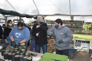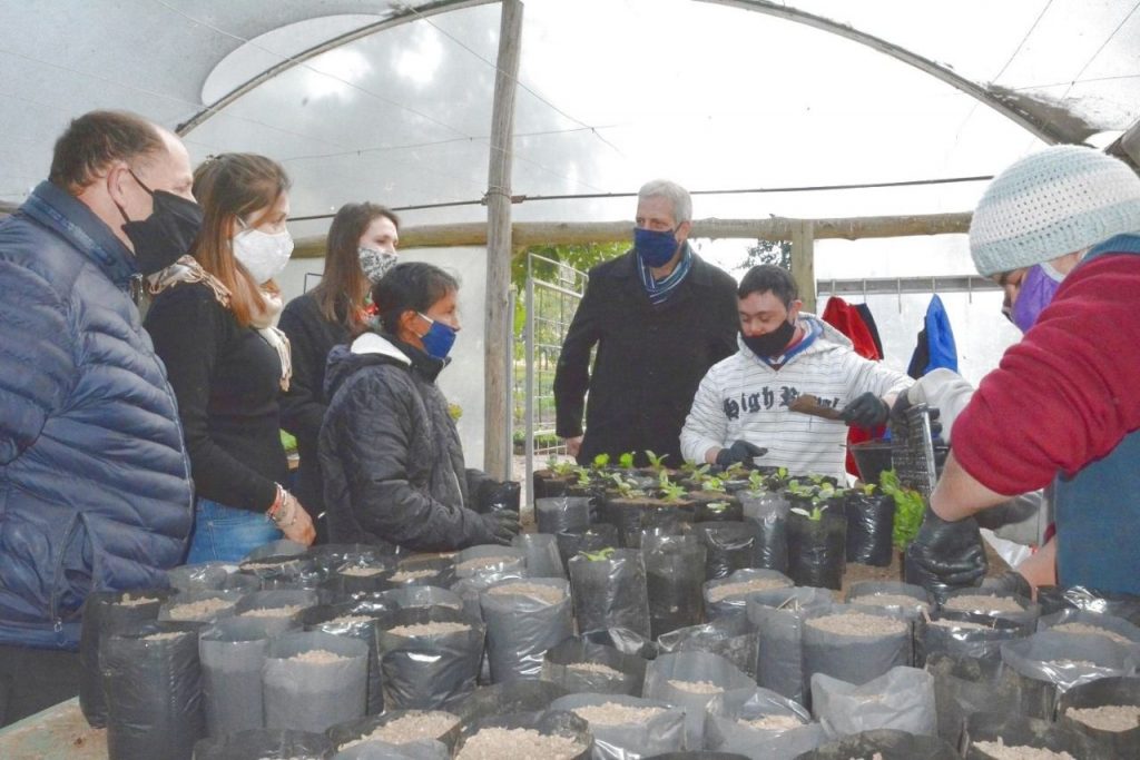 El Intendente Dionisio Scarpin junto a la Secretaria de Desarrollo Humano y Hábitat, Lelia Paulín; el titular de la cartera de Servicios Públicos y Medio Ambiente, Osvaldo Braidot y la Coordinadora de políticas educativas, Yamila Ferreyra visitaron, este jueves 30 de julio, a los jóvenes que desarrollan actividades en el Vivero Inclusivo “Sembrando sueños”.