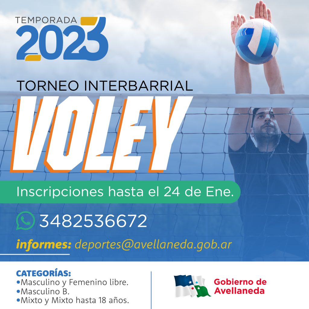 En el marco del programa Avellaneda se mueve, el Gobierno de la ciudad invita a los interesados a participar del Torneo interbarrial de Voley cuyas inscripciones tendrán lugar hasta el martes 24 de enero, escribiendo al mail [email protected] o al número telefónico 3482 536672.
